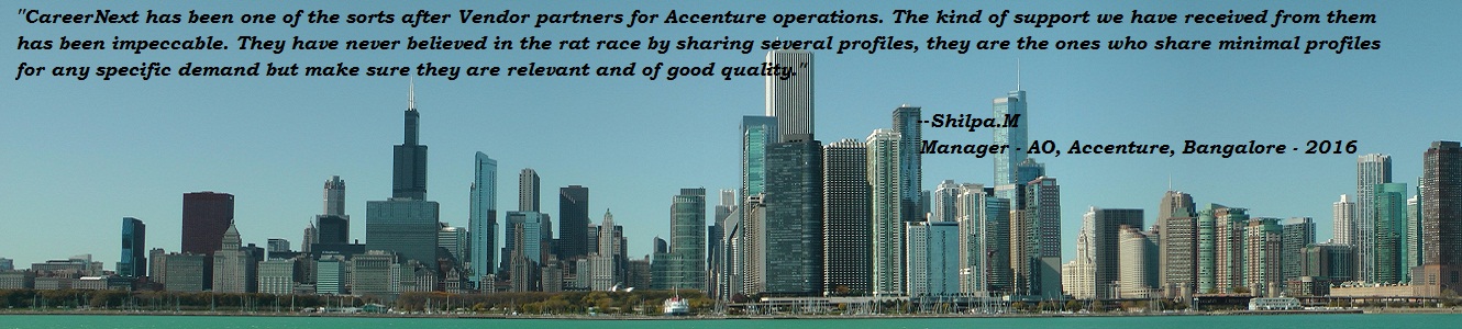 CareerNext made our tryst with destiny in 2004, since then we have emerged a leader in providing human resource solutions. Both the key promoters and senior consultant has a rich and varied experience and has work with large organization’s to develop and display a sound HR solutions and practices. CareerNext’s partnership in the recruitment functions with leading client in BFSI, IT, Finance, Pharmaceuticals Media, shipping and Telecom sector has positioned CareerNext as trustworthy and reliable partner for all HR needs of the organization. CareerNext has played a key role in the candidate, client relationship by mentoring the candidate different interview process and client to set and meet the expectations for the benefit of both stakeholders. |